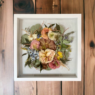 "Bay Blooms was the perfect choice for preserving my wedding flowers. The owner responded quickly to my initial inquiry. My experience was very professional and they even came to my wedding to pick up my flowers. The finished product is gorgeous and great quality. I will cherish my pressed flowers forever!"– Schyler McDonnell