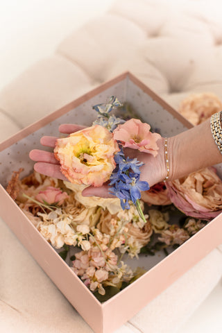 - Drying Process: Once we receive your flowers, we start drying them the same day. We select the best-suited florals from your bouquet for use.