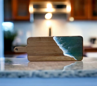 Charcuterie Boards: These boards are mainly for decorative purposes, as the area of the board covered in resin is not food safe. When used as a charcuterie board, only place food where there is no resin. To clean, hand wash with dish soap, and dry the resin covered area with a microfiber cloth. Do not soak. Routinely condition the wood with cutting board oil of your choice to maintain quality. This will prevent cracking and splitting.